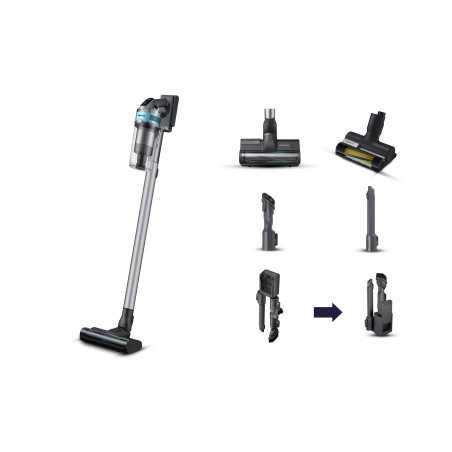 Samsung Aspirapolvere senza filo Jet™ 75E pet 200W VS20B75AGR1. Tipo di prodotto: Aspirapolvere a bastone 2 in 1, Tipo di contenitore della polvere: Senza sacchetto, Colore del prodotto: Nero, Colore menta. Tipo di pulizia: Secco, Metodo di separazione dello sporco: Multiciclonico, Superficie di pulizia: Tappeto, Superfici rigide. Alimentazione: Batteria, Massima potenza in entrata: 550 W, Potenza motore: 200 W. Larghezza imballo: 214 mm, Profondità imballo: 265 mm, Altezza imballo: 757 mm. Larghezza: 250 mm, Profondità: 215 mm, Altezza: 1130 mm